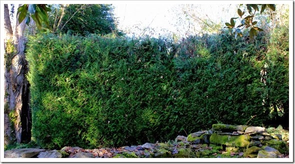 Муж второй день подряд работает в саду на мое благо. Стрижет неимоверно разросшуюся изгородь из туй.